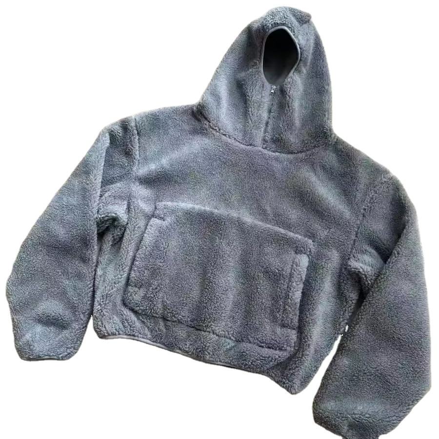 Cut and Sew manufacturer Boxy fit Hooded Sweatshirt mock Neck hoodies men Polyester sherpa fleece Hoodies jacket