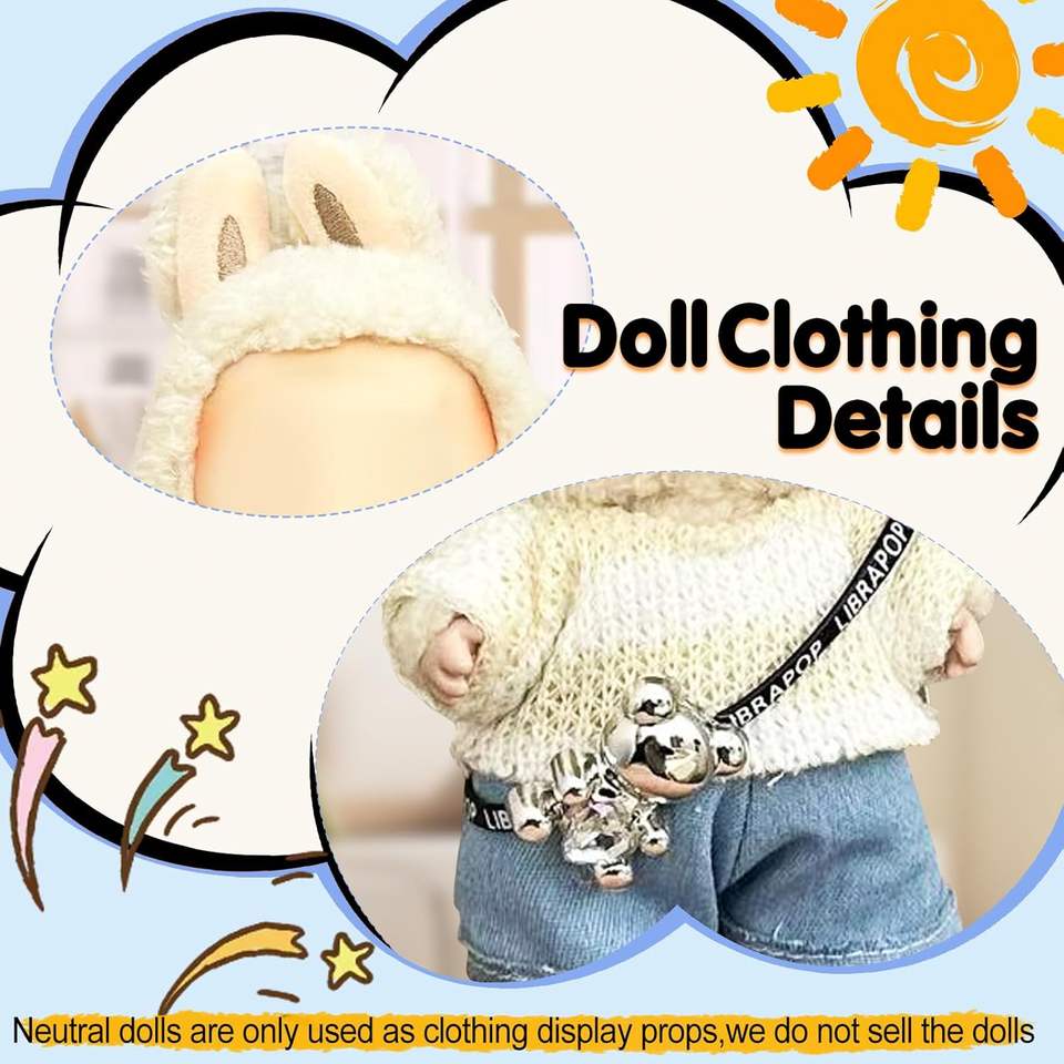 Cute 17cm Doll Outfit Accessories Kawaii Plastic Small Set with Sweater Denim Jeans Pants Eyancotoi Ages 18+ NO Doll Included