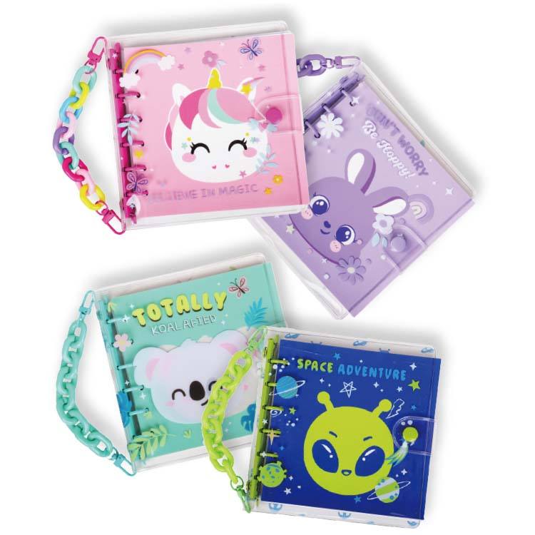 Carnet à chaîne en PVC avec motifs d'animaux mignons : Licorne, Lapin, Koala, et designs d'êtres étrangers pour l'école