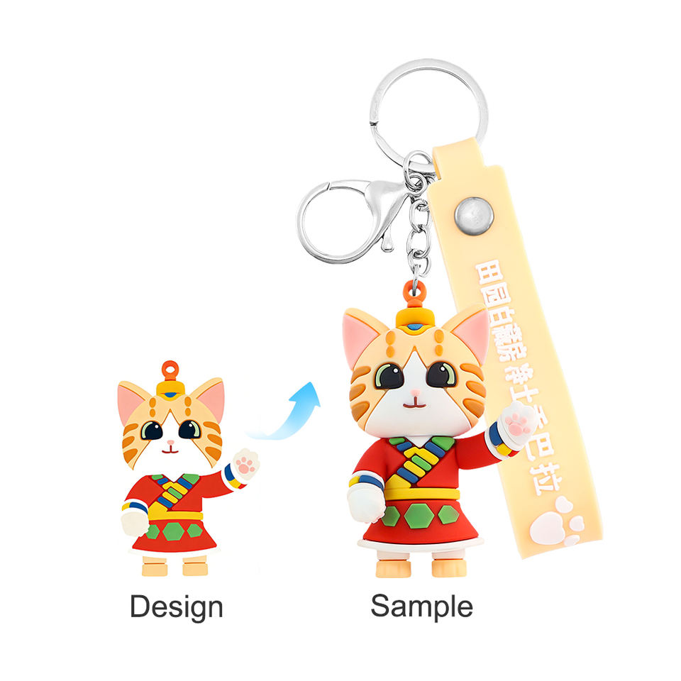 Porte-clés léger en PVC 3D personnalisé avec impression UV, personnage de dessin animé mignon