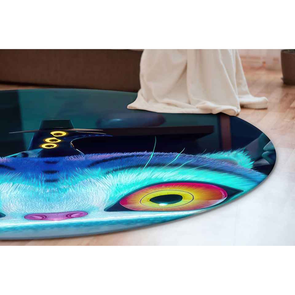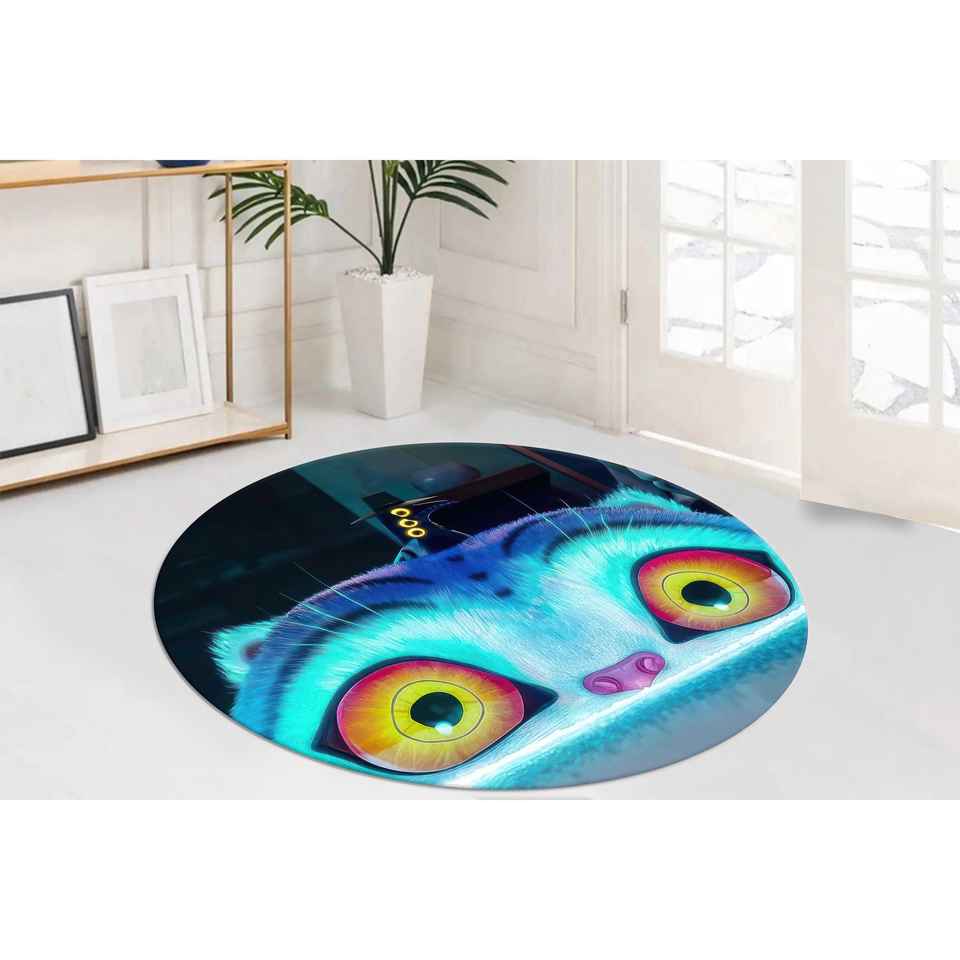 Tapis rond mignon avec motif de chat d'anime, tapis imprimé numériquement avec un dessin animé d'animal, tapis doux non tissé