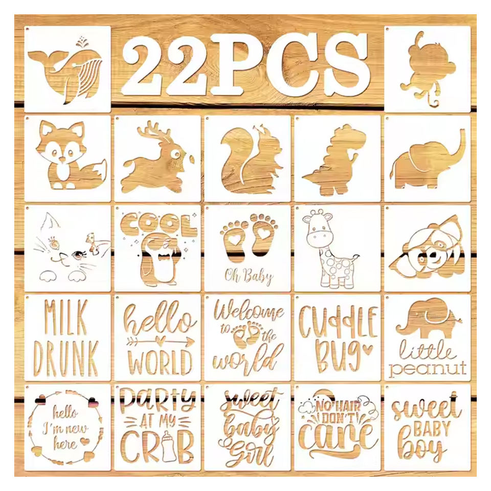 Cute Baby Shower Stencils for Painting on Fabric Shirts Bags Small Animals Theme DrawingTemplates