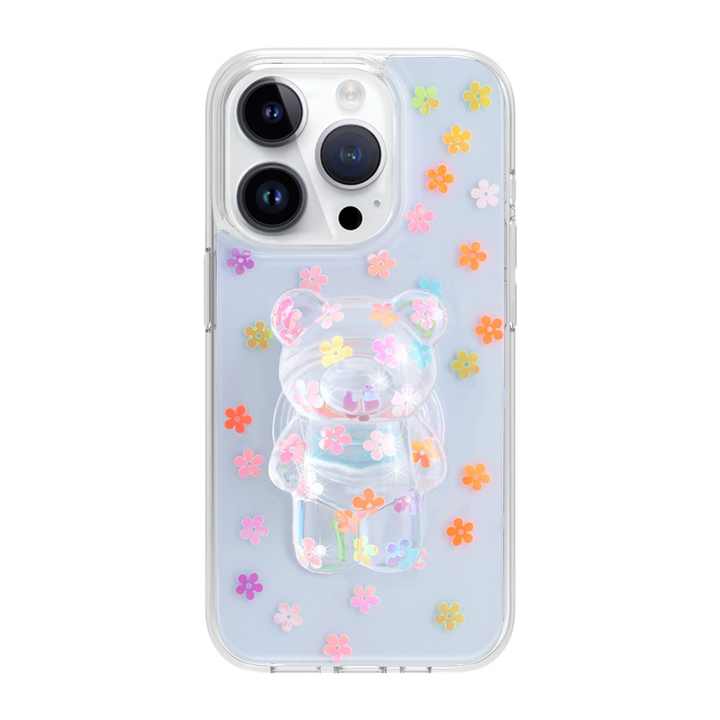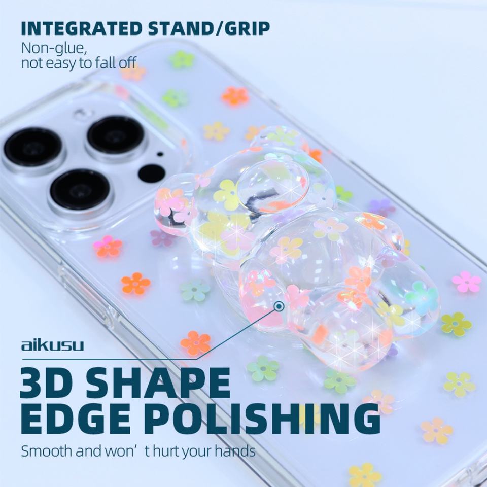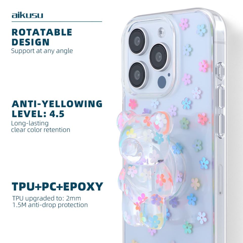 Coques de téléphone mignonnes en forme d'ours, avec poignée pour les doigts, en résine TPU, coques de téléphone portables antichoc transparentes pour iPhone 15