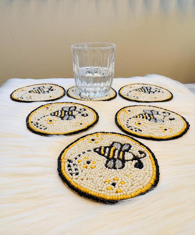 Sous-verre décoratif en toile de 300 mm, fait main, durable, orné de perles de rocaille, motif abeille mignonne, pour la maison et le bar