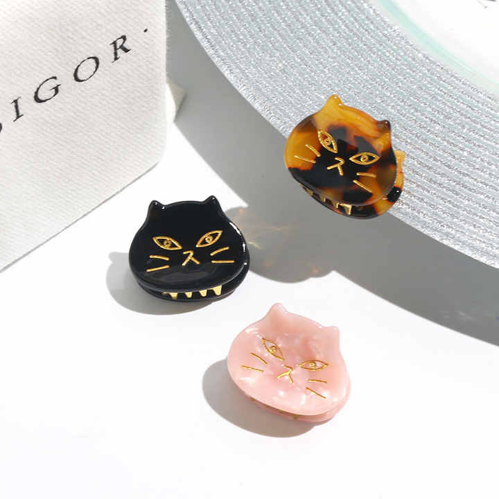 Mignon mini clip à cheveux en forme de visage de chat noir pour femmes, pince à cheveux pour enfants, accessoires pour cheveux, acétate dégradable, petites pinces à cheveux pour filles