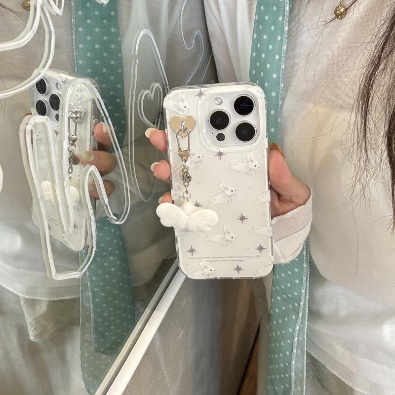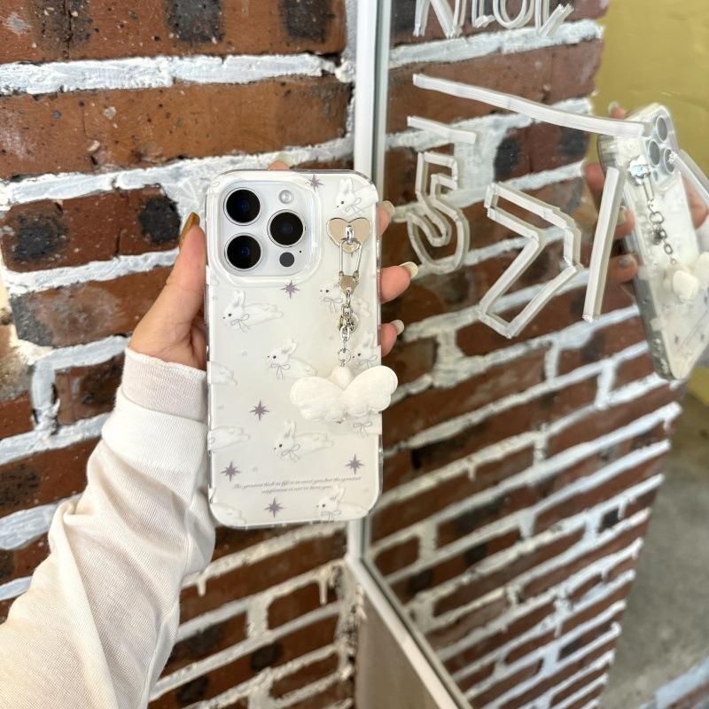 Coque de téléphone double couche avec nœud et lapin, avec pendentif, style mignon pour iPhone 17ProMax 16 15 14