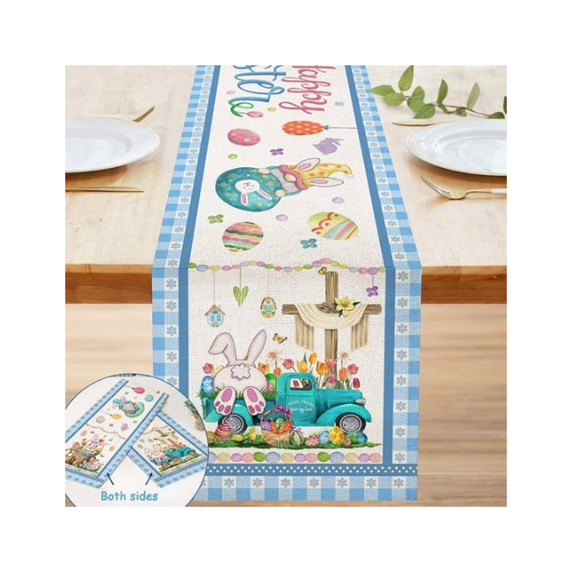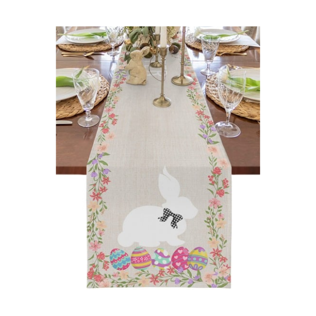 Chemin de table festif en coton 100% réactif teint, imprimé lapin mignon, tissage gaufré 230 GSM, écologique, durable, lavable en machine, 40x200 cm