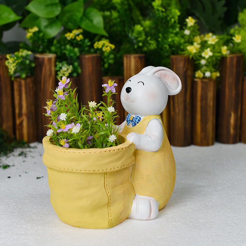 Cute Bunny Resin Rabbit Statue Planter Lifelike Hand-painted Animal Sculpture for Outdoor Easter Decor