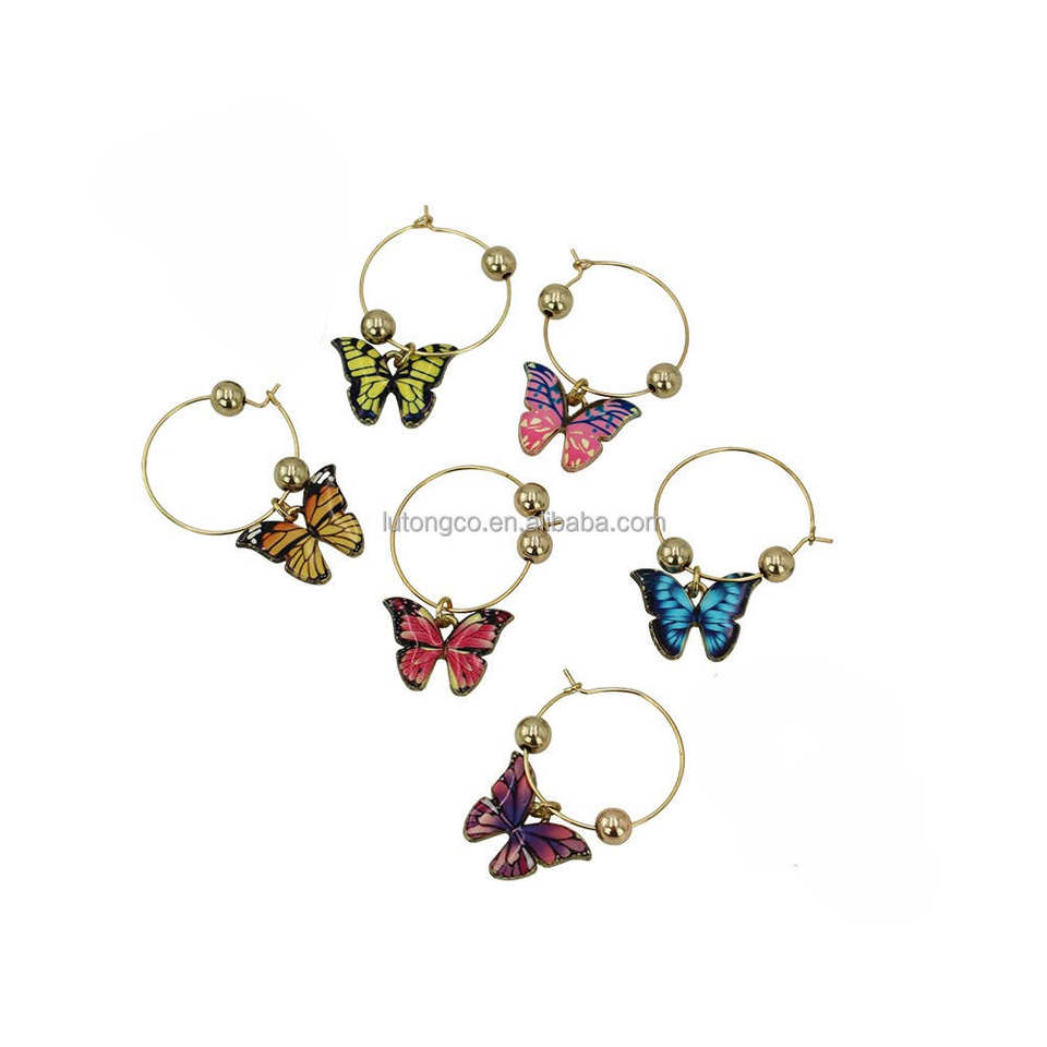 Anneaux de charme papillon mignons pour verres à vin, étiquettes individuelles de reconnaissance pour les réunions de famille et les toast de festival
