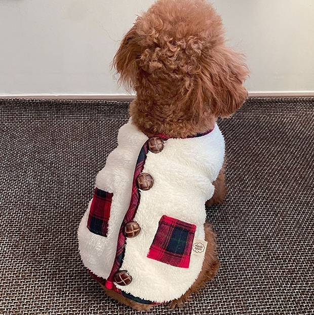Manteau en coton à boutons mignons pour petits chiots et chatons, veste chaude de Noël pour animaux de compagnie avec motif géométrique respirant de style occidental