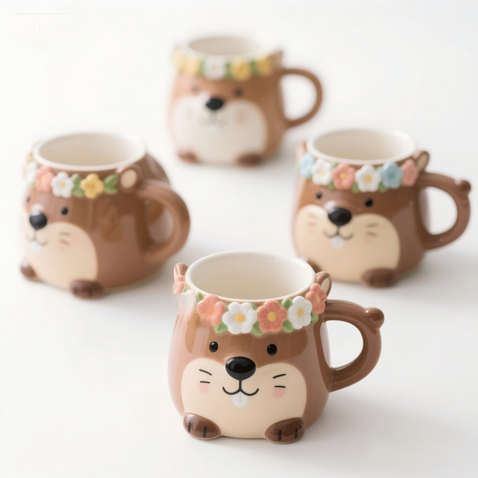 Bols en céramique mignons en forme de capybara avec couronne de fleurs 3D - Adorable plat à collation en forme d'animal, décoration de cuisine et de table Kawaii