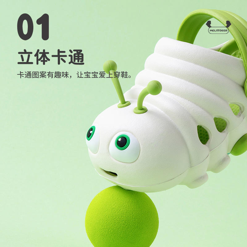 Sabots d'été mignons en forme de chenille pour enfants, sandales respirantes à semelle souple, pantoufles résistantes à l'usure pour bébés garçons et filles