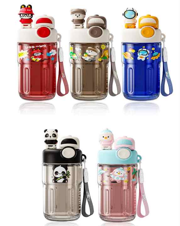 Personnage de dessin animé mignon 700ml tasse d'eau extérieure en plastique pour étudiants et enfants verres de sport scolaire avec autocollants de paille