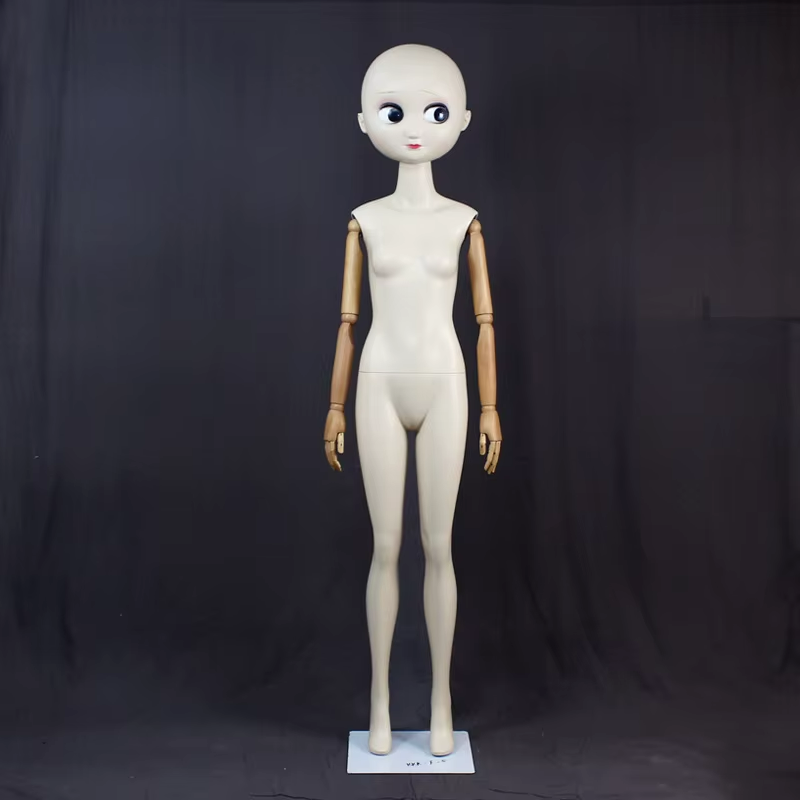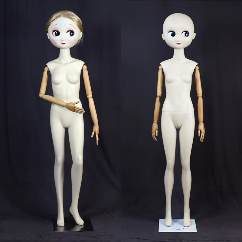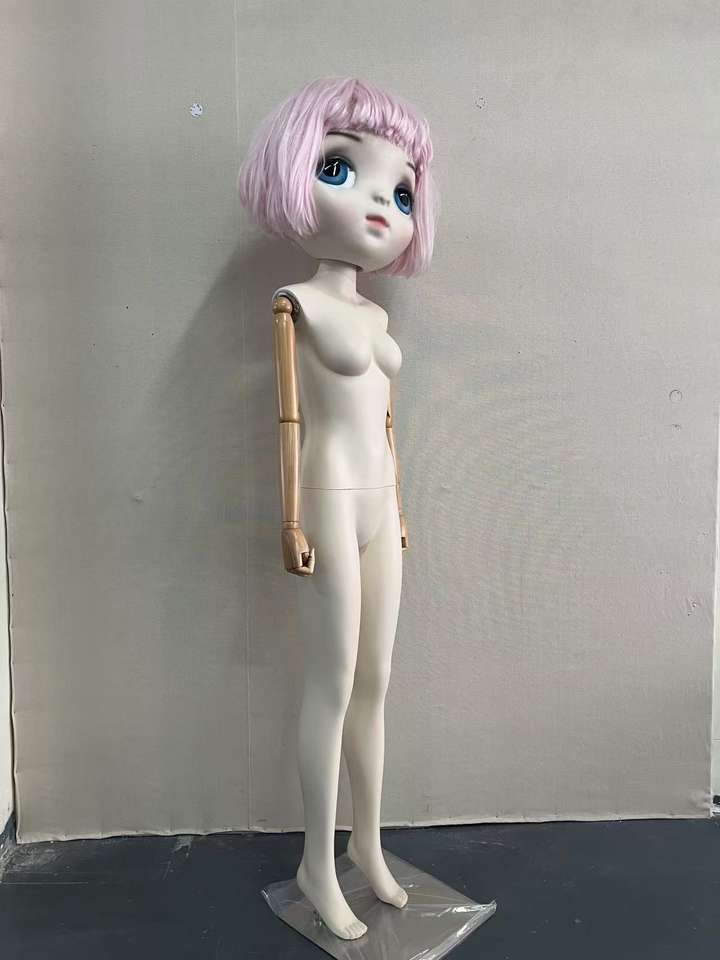 Mannequin de poupée féminine, mannequin de dessin animé mignon avec visage de maquillage assis, joli mannequin avec cheveux pour l'affichage des vêtements