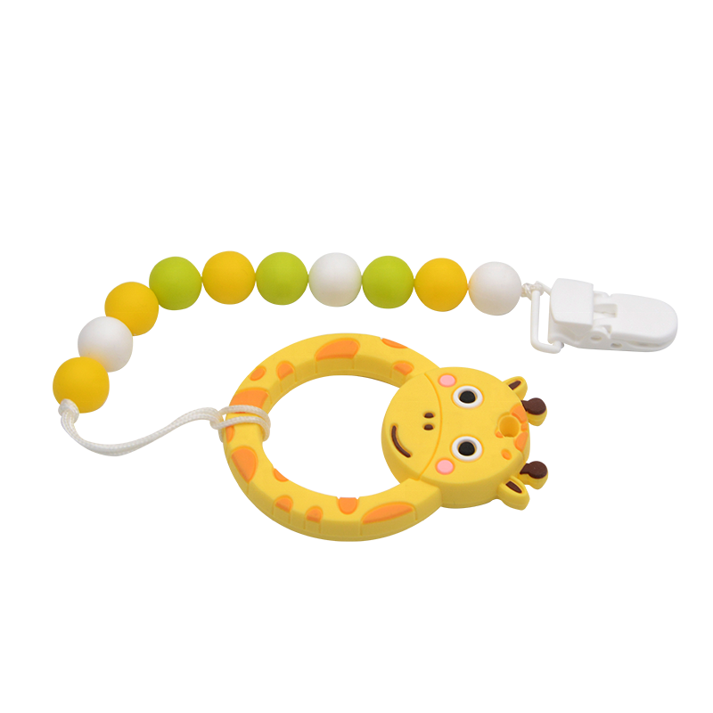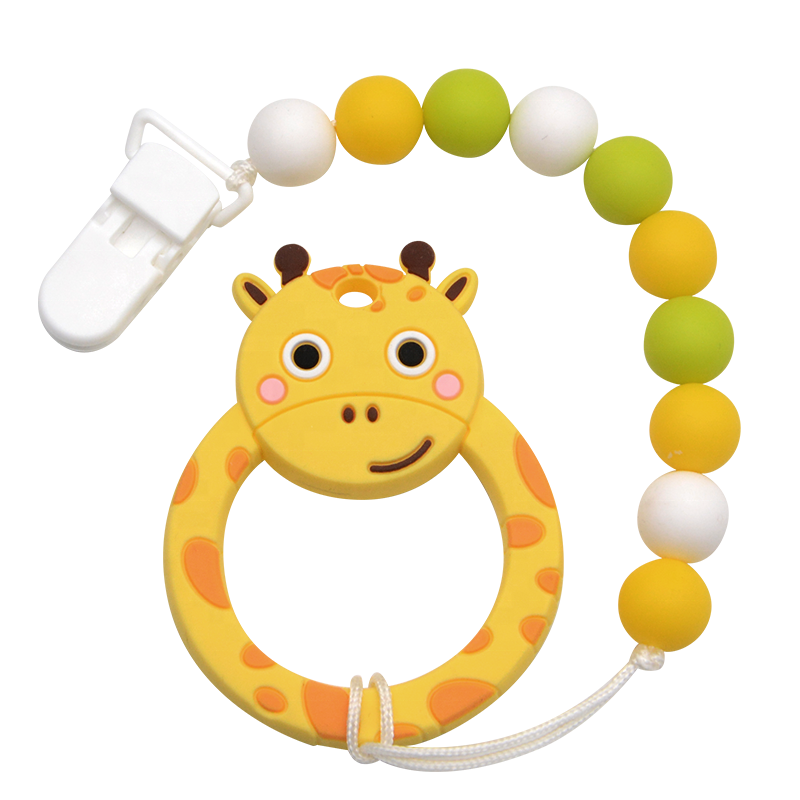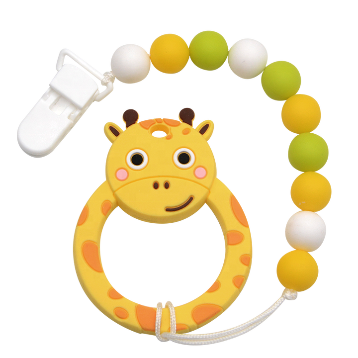 Cute Cartoon Giraffe Baby Teether Pacifier Chain Clip BPA-Free Silicone Infant Holder for 0-12 Months