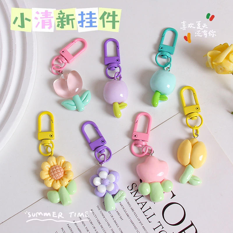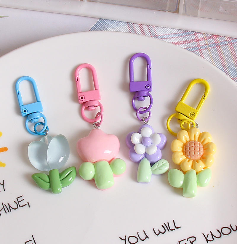 Porte-clés en métal en forme de tulipe en résine PVC motif dessin animé mignon, pendentif de sac tournesol, fleurs colorées variées, sac de rangement pour écouteurs en plastique