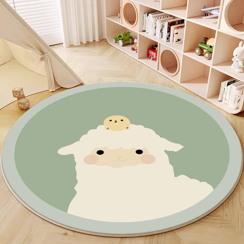 Tapis rond mignon en forme de mouton de dessin animé pour chambre d'enfant, tapis de sol doux antidérapant pour chambre à coucher, zone de jeu, diamètre 120 cm, facile à nettoyer, lavage localisé