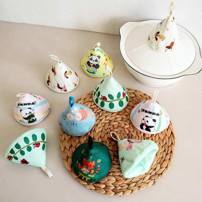 Couvre-couvercle triangulaire en polyester, dessin animé mignon, accessoire de cuisine isolant thermiquement pour casseroles en fonte émaillée