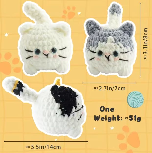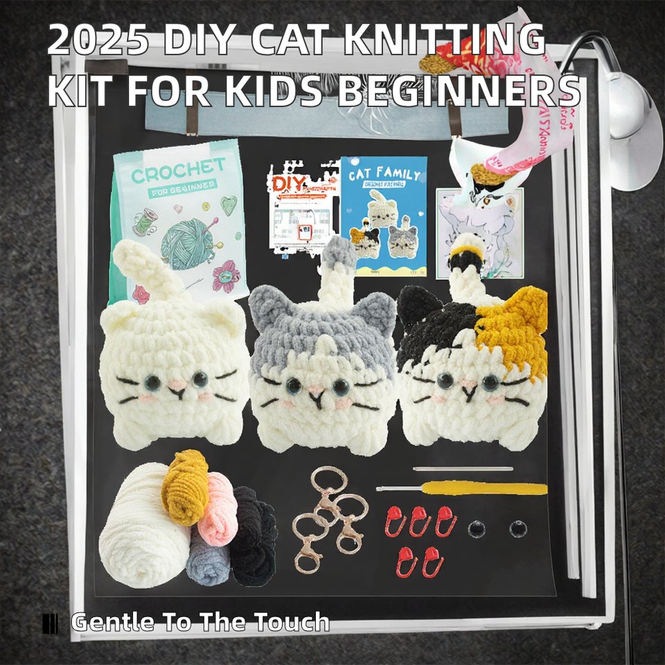 Kit de crochet chat mignon pour débutants, pack de matériel de tricot en laine DIY, ensemble cadeau artisanal pour porte-clés chat amigurumi