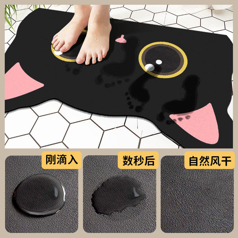 Tapis de salle de bain au design chat mignon, en fibre de polyester, absorbant, à séchage rapide, antidérapant, rectangulaire, pour l'entrée de la douche