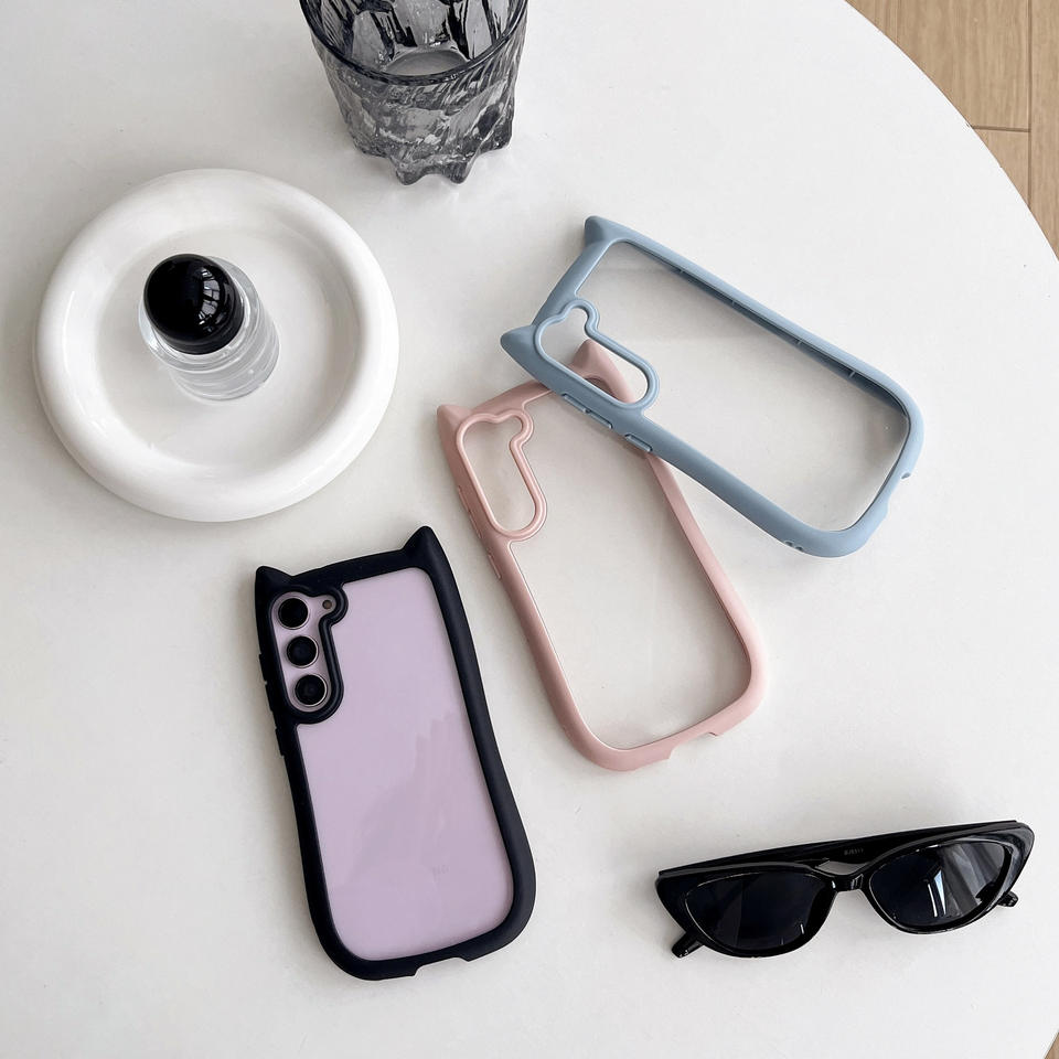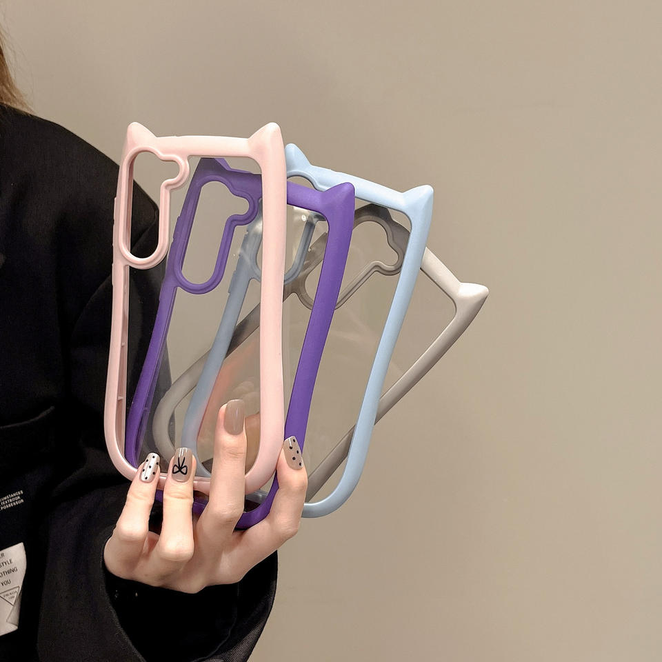 Coque de téléphone portable transparente avec oreilles de chat mignonnes pour Samsung Galaxy S24 S25 S26, coques transparentes Catwomen