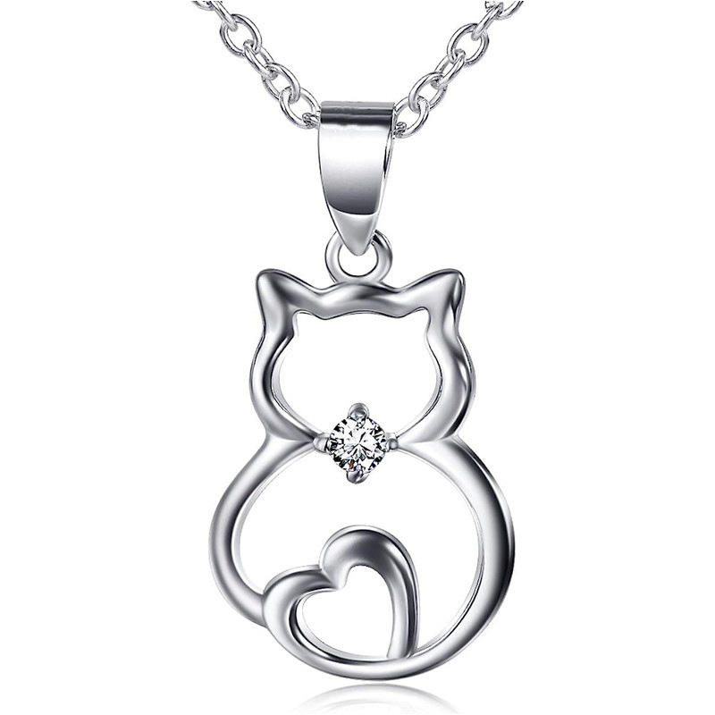 Collier pendentif chat mignon avec diamant rond taille brillant en argent, bijoux pour femme à porter au quotidien