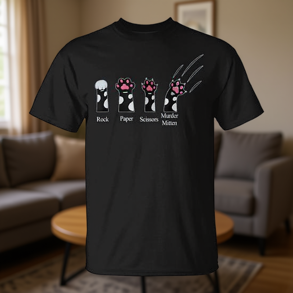 T-shirt promotionnel « Chatons mignons disant Rock Paper Scissors Murder Mittens »