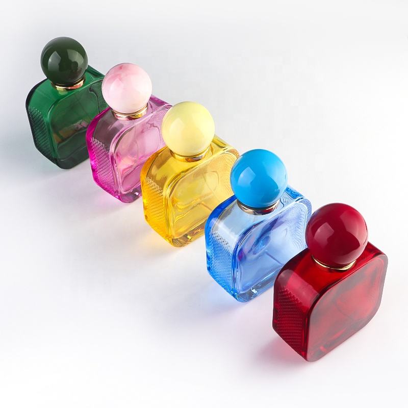 Mignon coloré 50ml carré clair vide gaufrage côté 15mm pulvérisateur à sertir bouteille de parfum en verre avec bouchon à bille