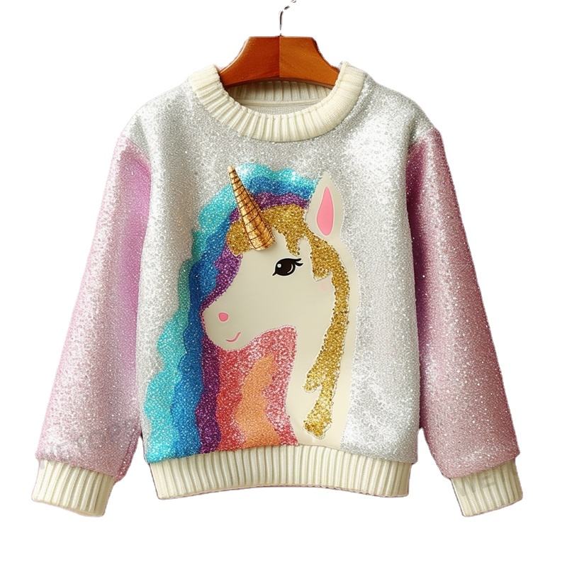 Pull à paillettes de licorne de dessin animé coloré mignon pour filles enfants
