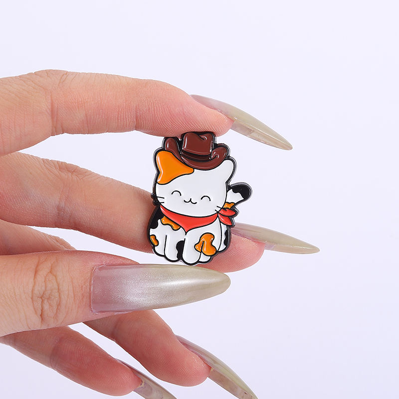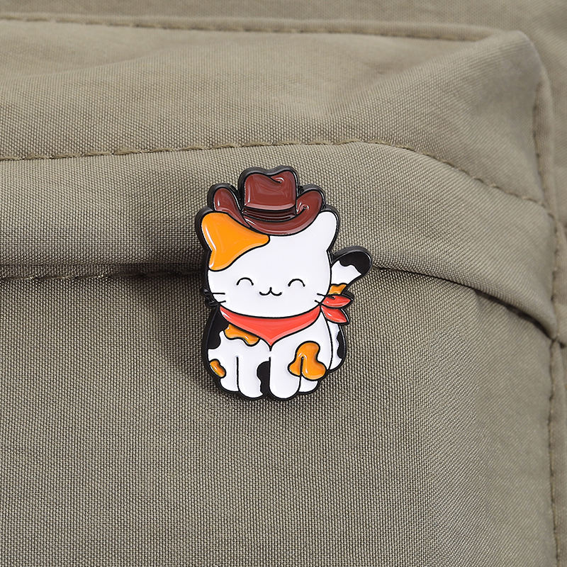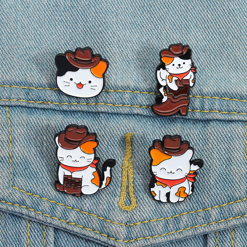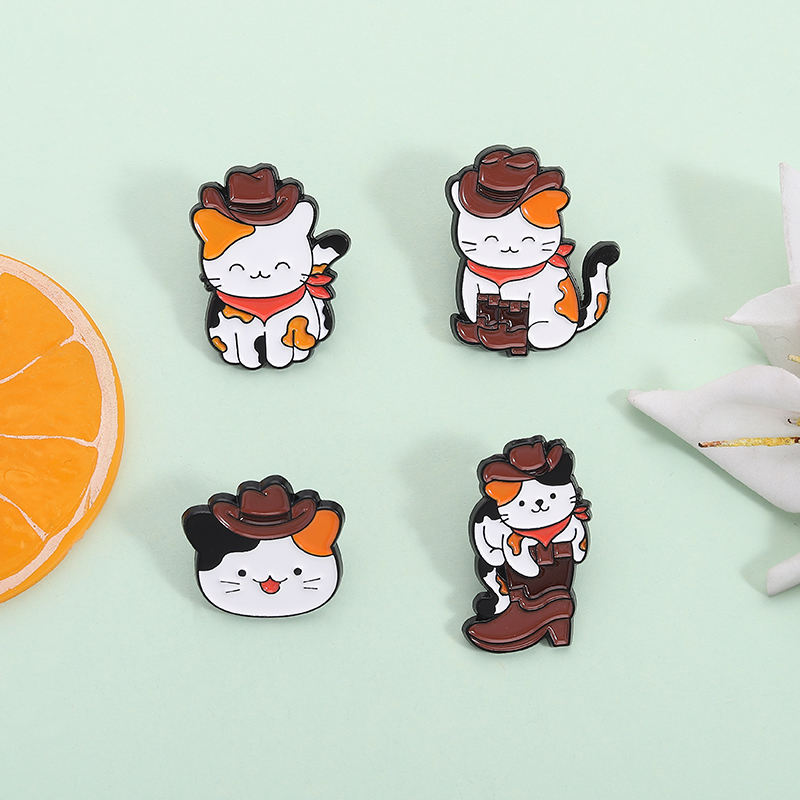 Mignon Cowboy chat émail broche drôle chaton en chapeau et bottes broche bijoux cadeau pour amis en vrac en gros