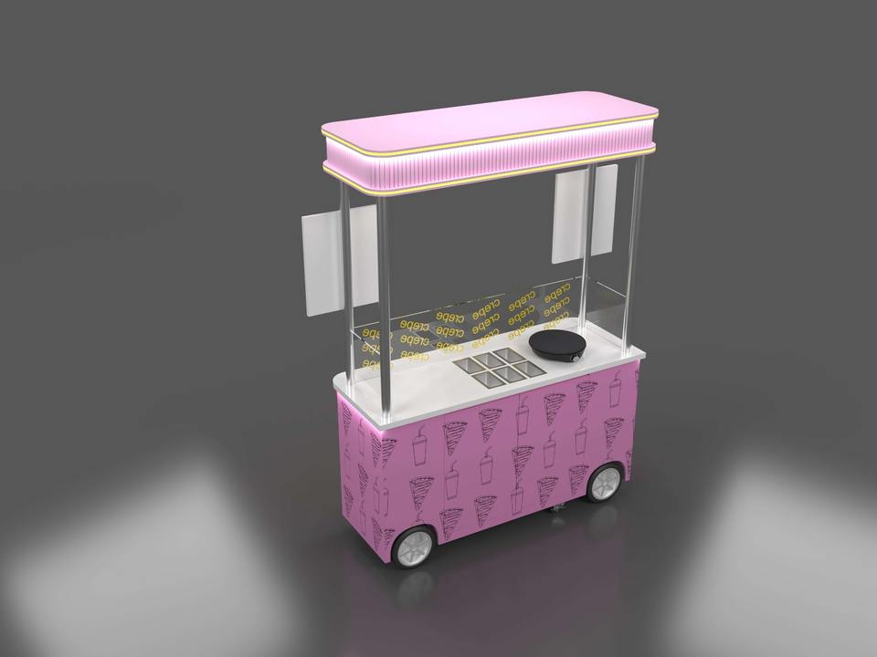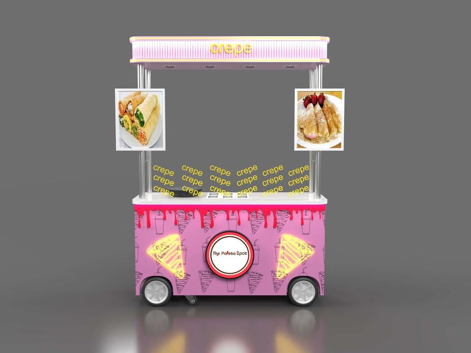 Charrette à crêpes mignonne, stand de restauration rapide rose en plein air, comptoir à bretzels, petite taille, kiosque mobile