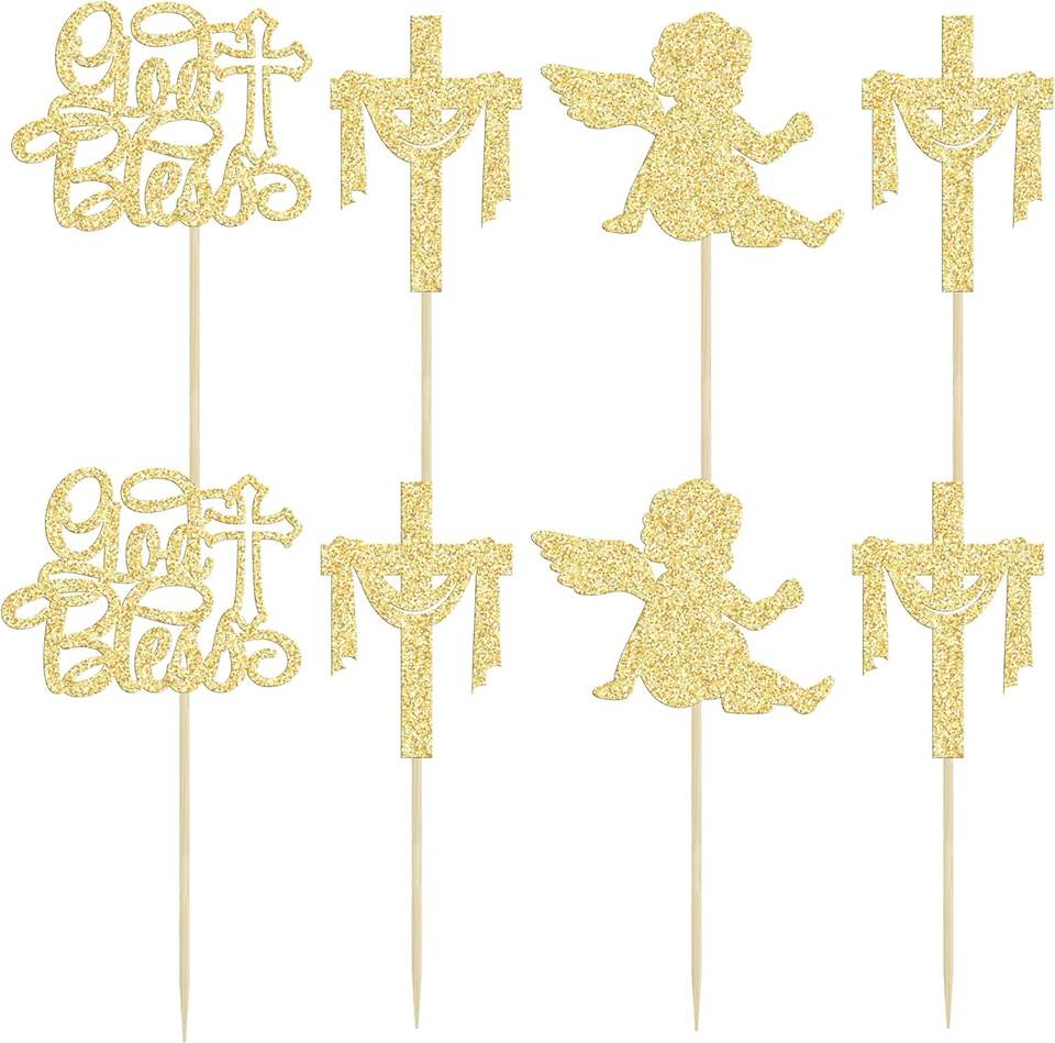 Golden God Bless Croix Cupcake Toppers
