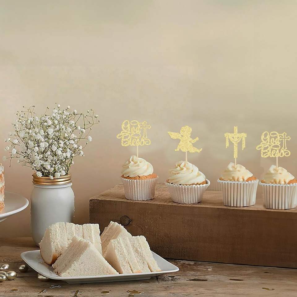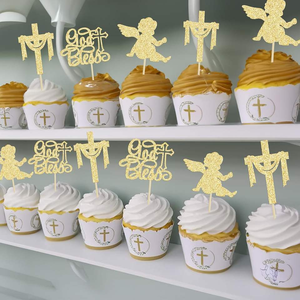 Décorations de cupcakes mignonnes en forme de croix, avec inscription « Dieu vous bénisse », pour la première communion des enfants, décoration de gâteaux