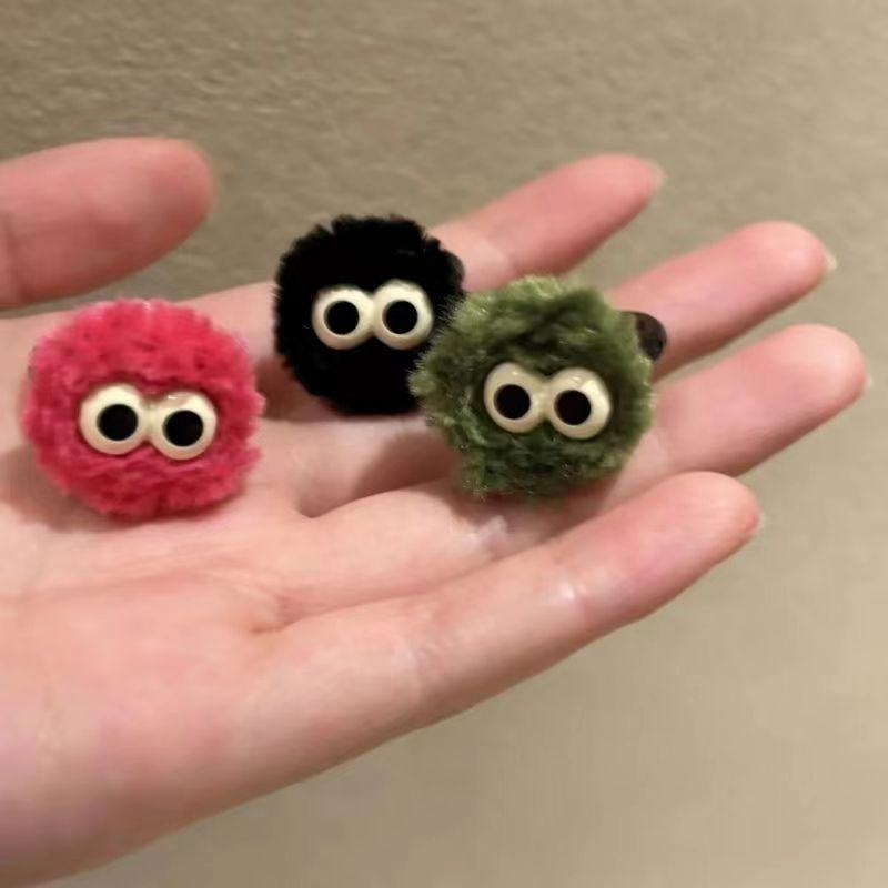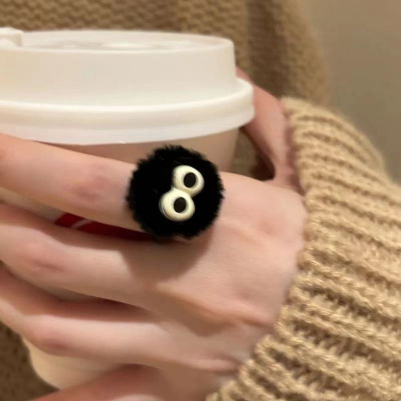 Bagues en peluche en forme de boule de charbon au design mignon pour femmes, bagues ouvertes amusantes en forme de dessin animé, cadeaux pour meilleures amies, bijoux
