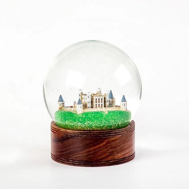 Cute Design Wooden Base Snowball America Hotel Building Designed Glass Globe Custom Snow Globe Brand Souvenir Gifts