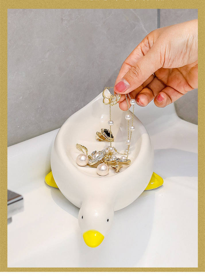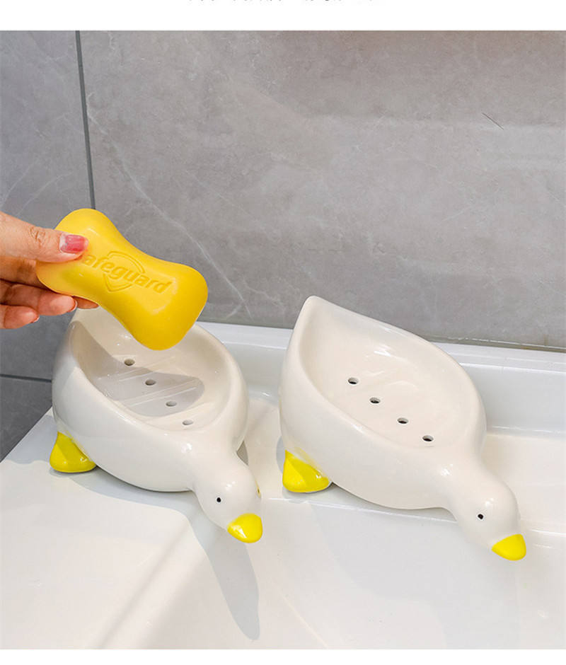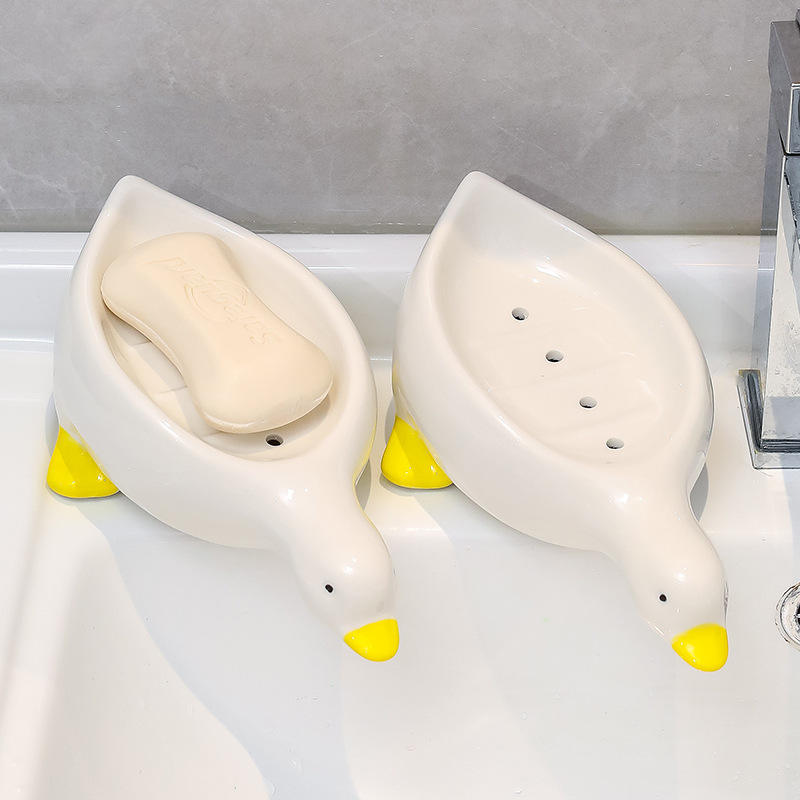 Cute Duck Shape Ceramic Self-Draining Soap Dish Holder Tray for Bathroom Shower Kitchen Sink & Bedroom Bath & Toilet Supplies