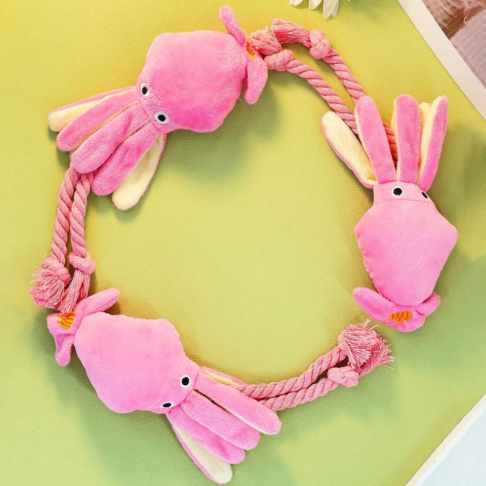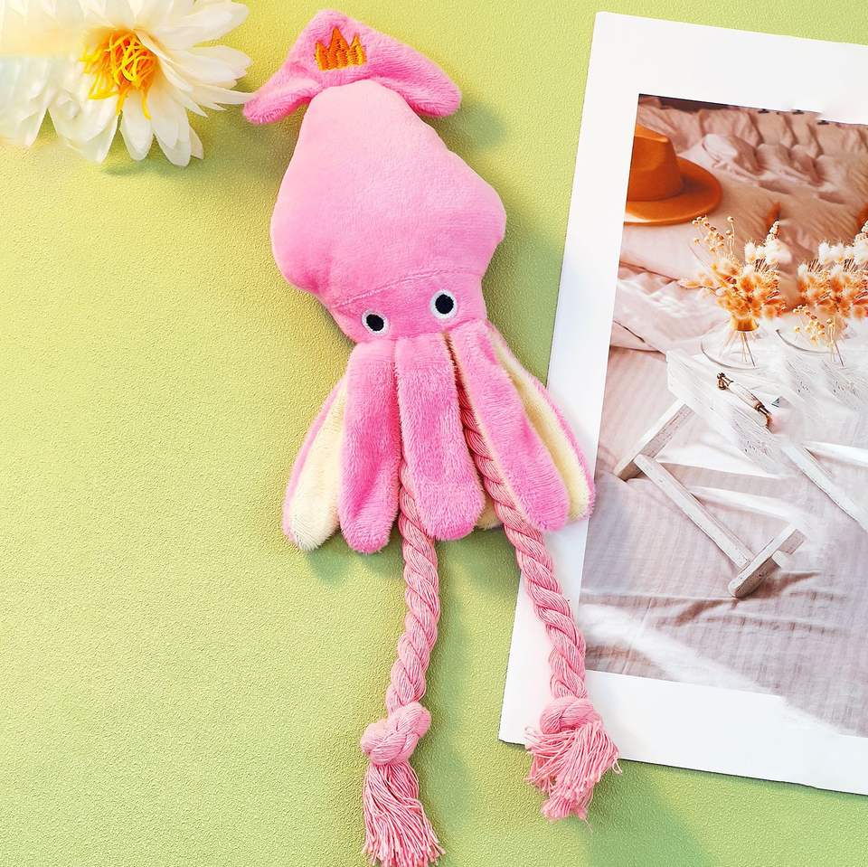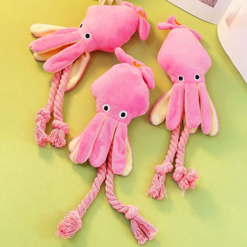 Jouet en peluche pieuvre mignon et écologique, sonore, durable, résistant aux morsures, avec nœud en corde pour chien, étanche IP67, vente en gros