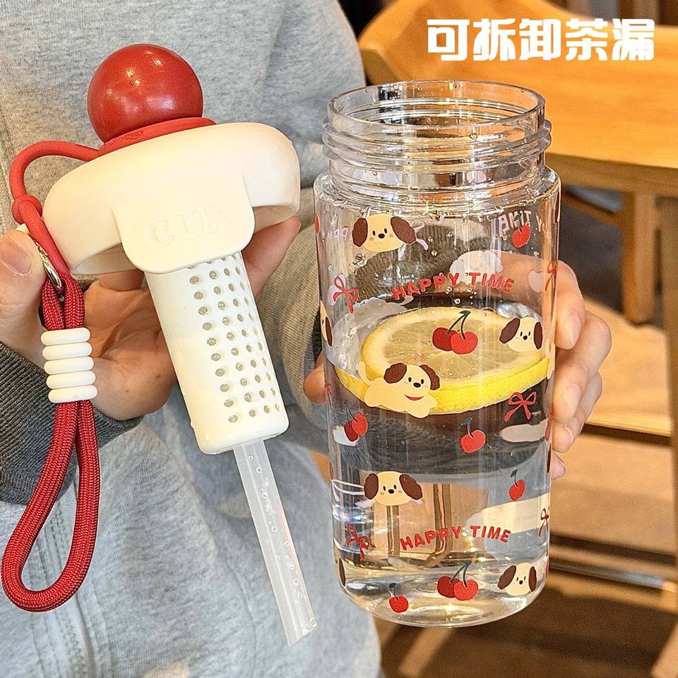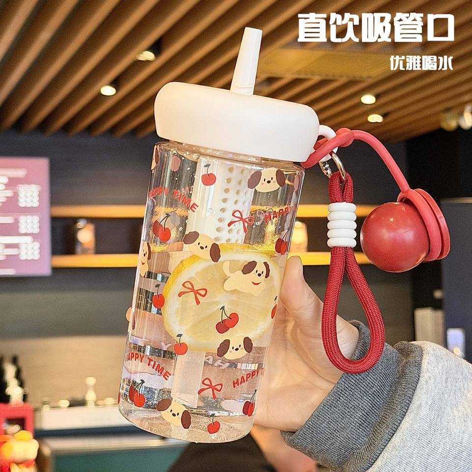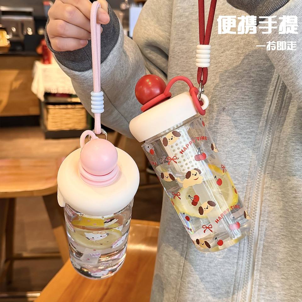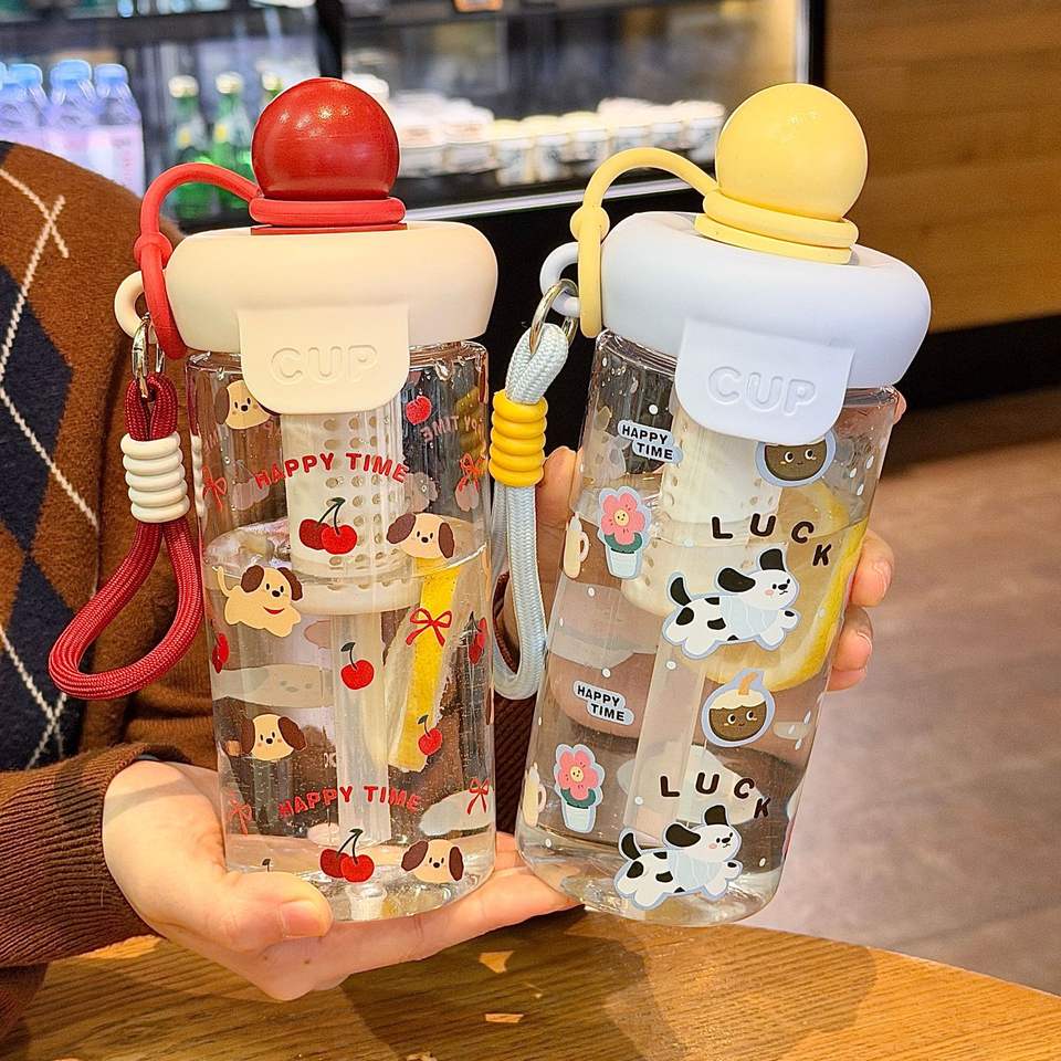 Bouteille d'eau mignonne avec paille, grande capacité, en plastique, pour filles, étudiantes, portable, design dessin animé, pour le camping