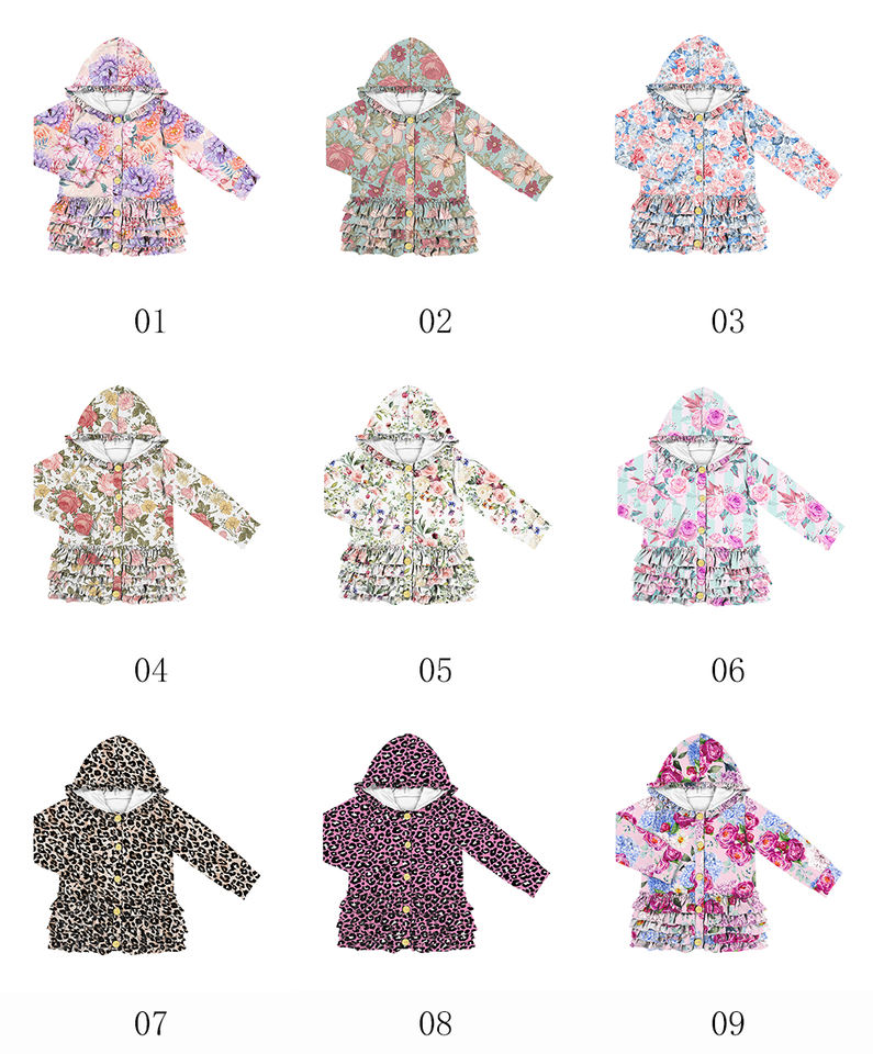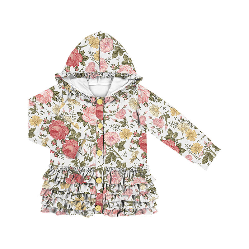 Manteaux et vestes à capuche à manches longues pour filles, avec boutons à motif floral et volants, collection automne, style boutique, vente en gros