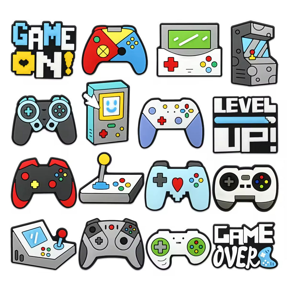 Chaussures de console de jeu mignonnes Charme contrôleur de jeu de dessin animé doux, sabots en bois, charmantes pantoufles Bracelets décorations de chaussures