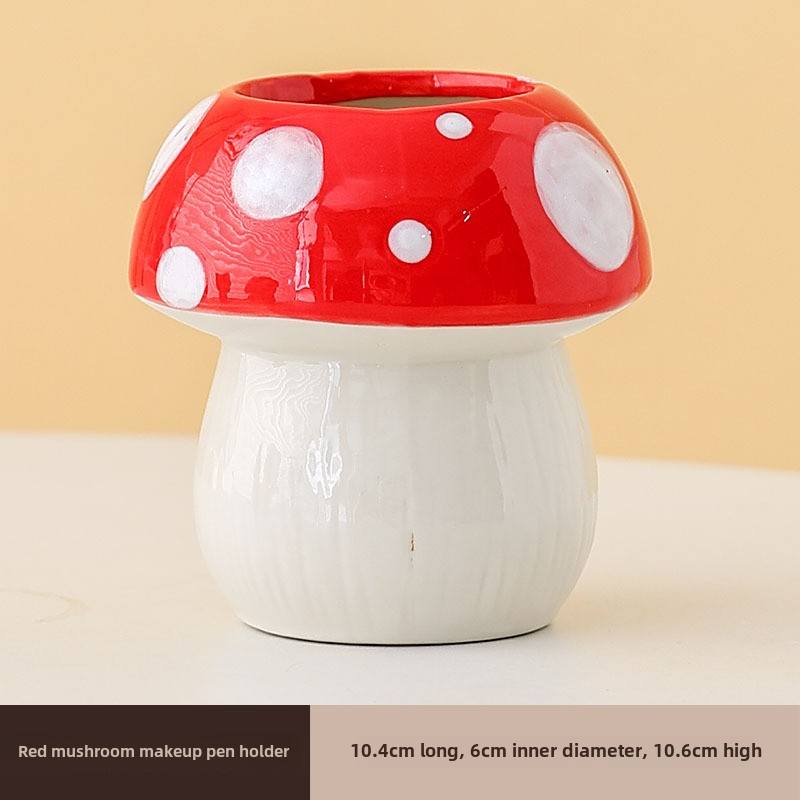 Porte-stylo en céramique pour fille mignonne organisateur de papeterie de bureau champignon écologique ornement créatif pour le bureau ou les étudiants