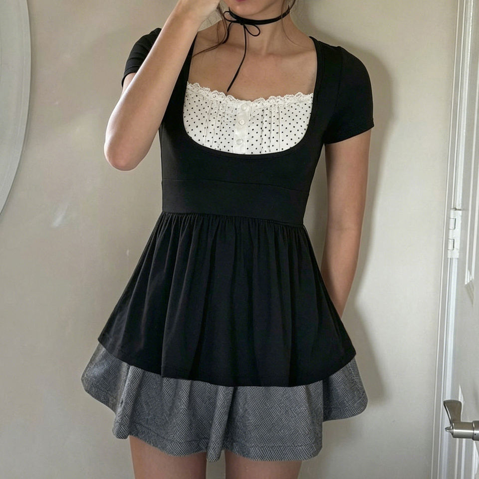 T-shirt d'été mignon pour femme, écologique, à blocs de couleur, avec nœud sur le devant, col en U, coupe ample, manches courtes, style A-line
