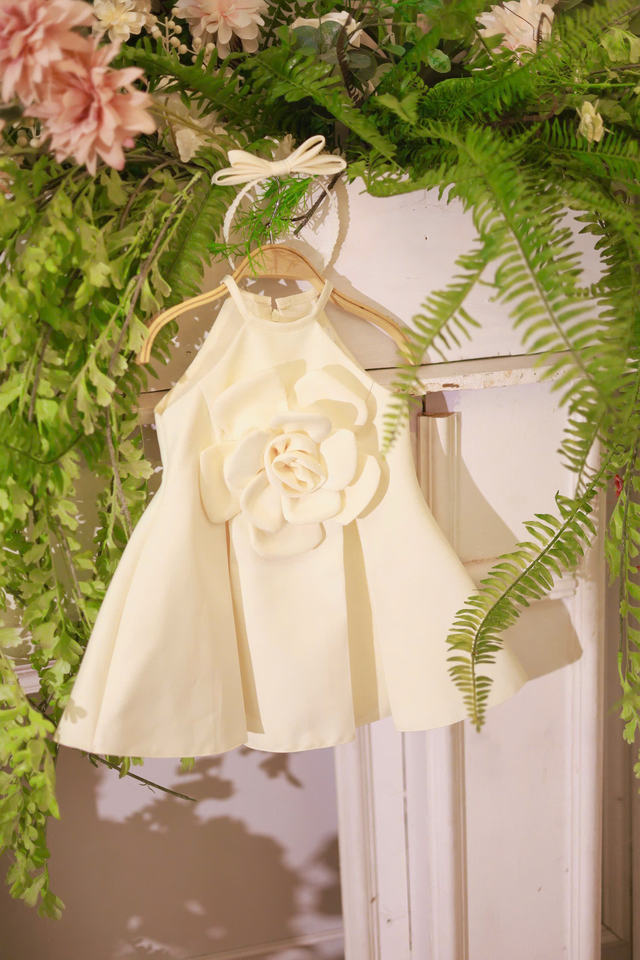 Robe de princesse mignonne à col halter brodée de fleurs pour filles, en gaze à sequins, écologique, pour usage quotidien et fêtes