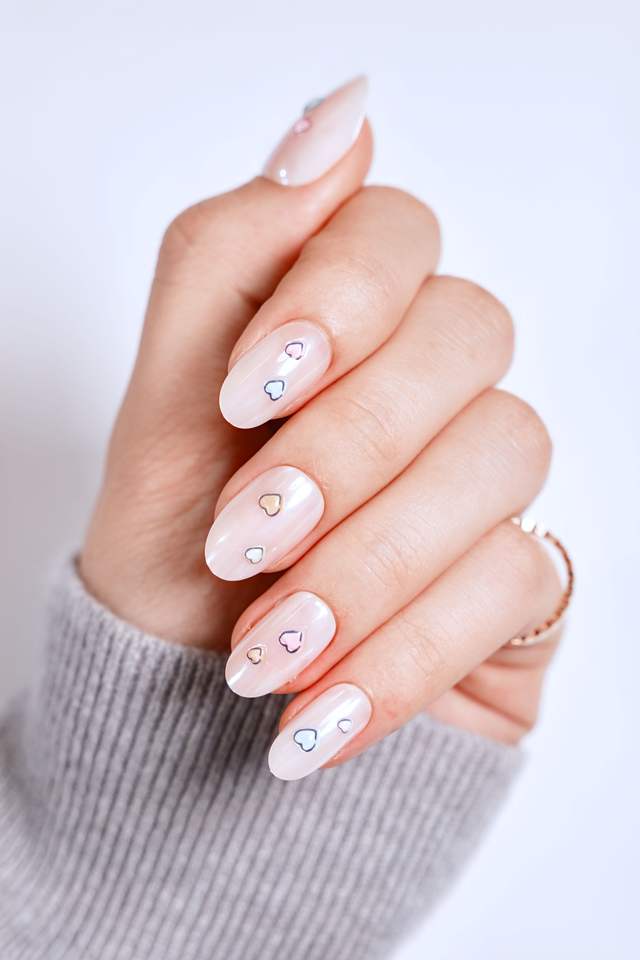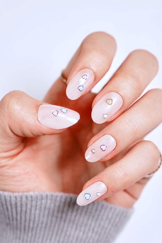 Faux ongles artificiels blanc laiteux à motif cœur mignon, forme amande, fournitures pour ongles personnalisées, ongles à presser, fabrication OEM ODM