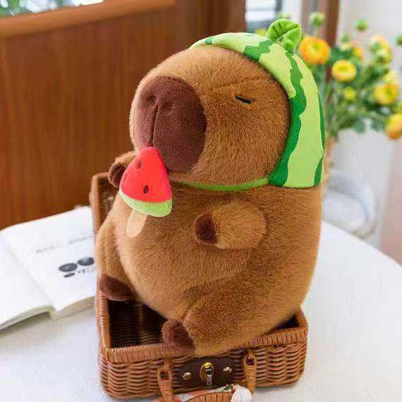 Peluche Capybara Mignonne en Tricot avec Écharpe – Animal en Peluche Marron Moelleux avec Rembourrage en Coton PP pour Cadeaux Thème Hiver et Compagnon