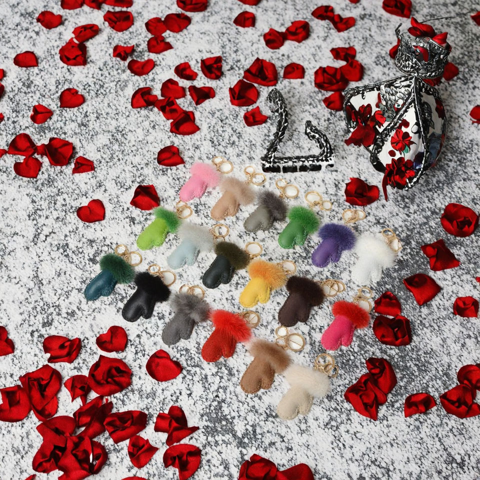 Gants créatifs de luxe mignons, pendentifs pour sac à main en laine, décoratifs, petits pompons en fourrure de vison, porte-clés