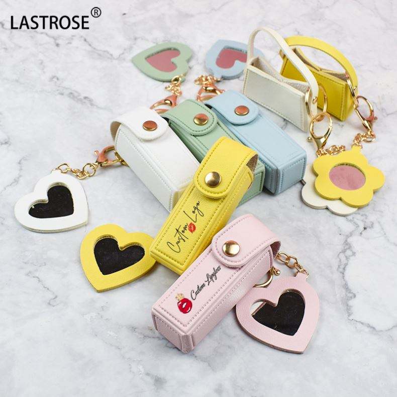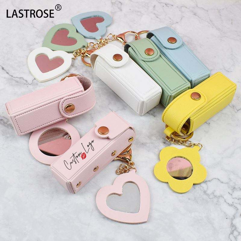 Porte-clés mignon en cuir PU pour rouge à lèvres, étui à baume à lèvres, sac à rouge à lèvres, accessoires de maquillage, porte-gloss à lèvres