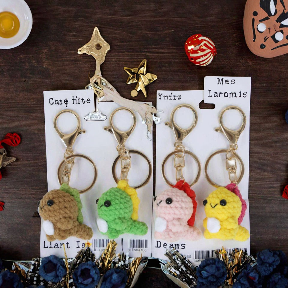Porte-clés en fil doux miniature mignon, crocheté, écologique, avec logo personnalisé, fait main, amigurumi, dinosaure, dessin animé, cadeau