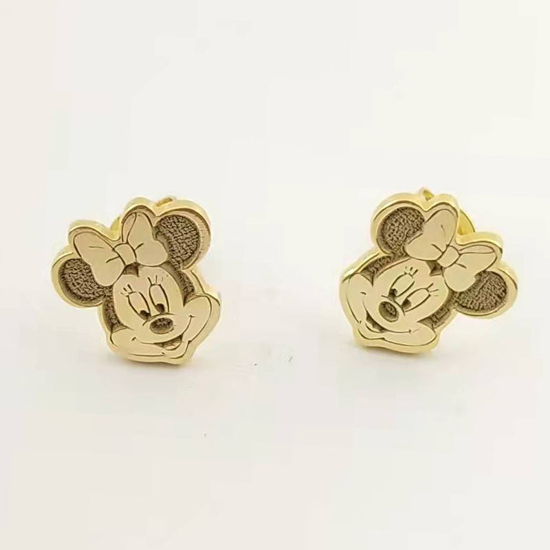 Mignonne Boucle d'Oreille Minnie Personnalisable Personnage de Dessin Animé pour Enfants Filles Bijou Cadeau Plaqué Or 18K Acier Inoxydable Clou d'Oreille