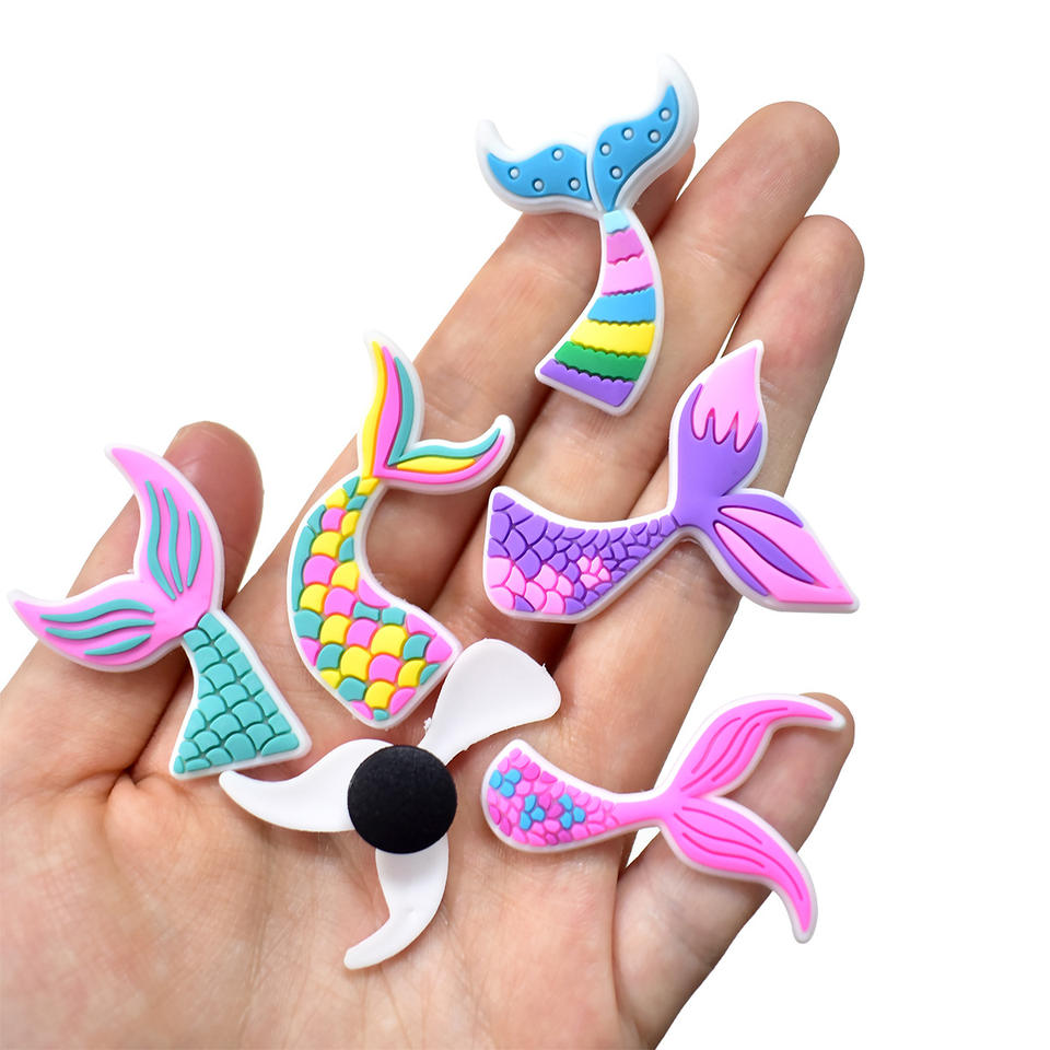 Charmes de chaussures en forme de queue de sirène, accessoires de chaussures unisexes en caoutchouc souple PVC, décoration de chaussures de plage de dessin animé DIY, nouveau design mignon